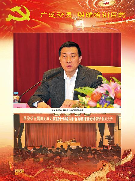 為深入學習貫徹黨的十七屆六中全會精神,研討進一步落實“十二五”時期中央企業(yè)改革發(fā)展總體思路和國資監(jiān)管、國企發(fā)展“兩新目標”,以及機關建設規(guī)劃綱要的思路和措施,同時梳理2011年的工作,研究2012年的工作,按照委國資委黨委的部署,11月15日至12月9日,國資委先后舉辦了4期學習貫徹六中全會精神理論培訓班。國資委主任、黨委書記王勇親自為參加培訓班的全體同志作動員報告,并在第一期班暨黨委中心組學習會上作了總結講話。在京的國資委黨委委員、副秘書長,機關廳局長、監(jiān)事會各辦事處主任和全體黨員干部以及直屬事業(yè)單位、管理局系統(tǒng)黨政領導班子成員、直管協(xié)會和部分京外企業(yè)在京單位黨組織負責同志共計1100余人參加了培訓,監(jiān)事會主席單獨進行了培訓。