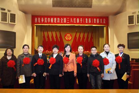 2012年3月7日上午,創(chuàng)先爭優(yōu)巾幗建功全國三八紅旗手(集體)表彰大會在北京人民大會堂隆重舉行。會前,中共中央政治局委員、全國人大常委會副委員長王兆國,中共中央政治局委員、國務委員、國務院婦女兒童工作委員會主任劉延東等接見受表彰的在創(chuàng)先爭優(yōu)活動中涌現(xiàn)出的全國三八紅旗手標兵及全國三八紅旗手和集體、城鄉(xiāng)婦女崗位建功先進集體和個人代表。王兆國在接見時作了重要講話。劉延東出席會議。全國人大常委會副委員長、全國婦聯(lián)主席陳至立出席會議并講話。