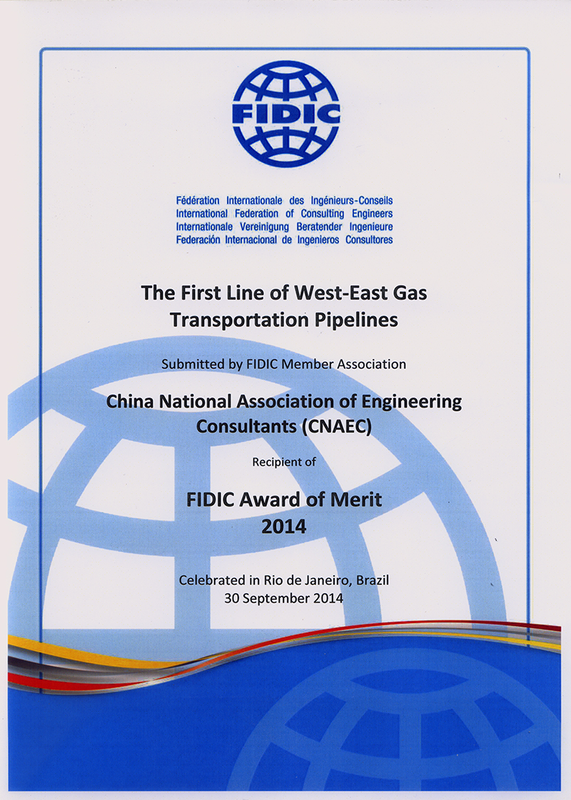 西氣東輸管道一線工程獲FIDIC獎(jiǎng)(2014年)