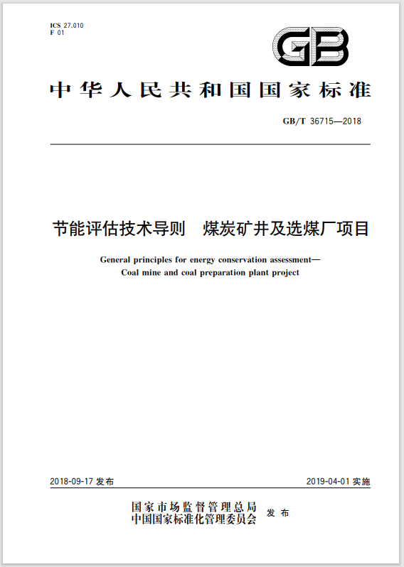 本標準適用于新建或改、擴建煤炭礦井及選煤廠項目節能評估,煤炭礦井及選煤廠技術改造項目可參照執行。