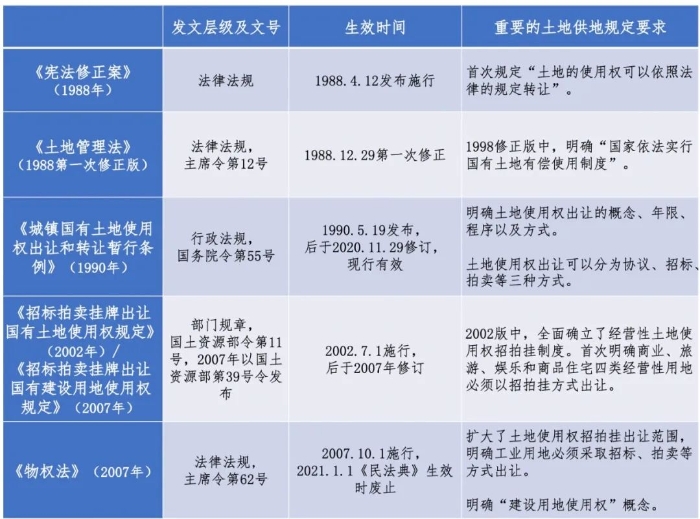 編者按 新中國成立以來,我國基礎設施投資建設取得了舉世矚目的成就,是國家經濟社會發展的重要支撐,為人民生活水平的提高做出了巨大貢獻。改革開放以來,市場開始發揮配置資源的基礎性作用,為我國基礎設施的發展煥發了新的活力。據統計,我國基礎設施資產總規模在1990年排在全世界約第15位,2000年上升到第7位,2010年躍升為第3位,至2018年已居世界首位。 黨的二十大報告在回顧過去五年的工作和新時代十年的偉大變革中,充分肯定了基礎設施在經濟社會中發揮的重要作用,報告指出,我國“建成世界最大的高速鐵路網、高速公路網,機場港口、水利、能源、信息等基礎設施建設取得重大成就”。我國基礎設施多年來大規模的投資建設和存量資產的高速積累,是黨中央、國務院在建立社會主義市場經濟體制背景下,關于投融資體制改革部署的重要成果。 項目前期工作手續的合規性要求,是基礎設施能夠發揮其應有價值的重要前提,也是投融資體制改革關注的重點內容之一。伴隨著政府職能轉變、深化“放管服”改革和擴大有效投資等重大決策的關鍵部署,我國工程建設項目審批制度不斷優化和改革,基礎設施項目投資前期決策管理經歷了復雜的演變進程,其合規性標準也在與時俱進、不斷完善。當前我國已進入基礎設施存量時代,存量資產項目前期工作手續的合規性是重要的盤活條件之一,部分合規性問題已成為新時代社會廣泛關注的焦點。本項專題研究立足投融資體制和項目審批制度變革的歷史背景,嘗試厘清基礎設施項目在立項、土地、規劃、環境、建設施工等方面主要前期工作的歷史變革脈絡,梳理不同管理事項之間的邏輯關聯,從這一視角提供基礎設施項目前期工作手續的合規性認識。本公眾號將研究報告的部分成果以系列文章的形式陸續刊發,研究報告第一部分為背景與立項篇,本文是研究報告的第二部分(土地與規劃篇),供業界同仁參考。 基礎設施項目前期工作手續合規性研究(Ⅱ) 張雪飛 伍迪 摘要:皮之不存,毛將焉附。基礎設施項目在各級規劃框架和政策體系指導下依法合規地使用土地,是其創造價值的必要前提。基礎設施項目用地和規劃手續,隨著土地供應方式多元化、國務院機構改革及部委管理職能調整、相關法規政策優化而不斷變化演進,兩者彼此關聯但又有一定獨立性。自然資源部組建之前,根據國務院部委分工,土地資源的規劃、管理及合理利用事項由原國土資源部負責,城鄉規劃管理相關事項由住房和城鄉建設部負責。自然資源部組建之后,承擔了原國土資源部的全部職責和其他部委的相關規劃職能,實現了國土空間用途統一管控,建設項目的土地和規劃手續也進行了歸并整合。從政策歷史演進來看,基礎設施項目土地和規劃手續的審批程序,分中有合、合中有分,多有調整。探討其合規性問題,首要著眼于項目建設之時的歷史背景和政策制度安排,分析其是否符合當時適行的規定要求;在“歷史問題回歸歷史”的大原則下,也應當結合持續優化調整的政策要旨,審視土地和規劃手續本身的內涵和實質。本文對基礎設施項目土地和規劃手續的主要內容和制度演進進行了系統梳理,提供“動態歷史”下看待合規性問題的重要維度和關鍵視角,供業界參考。 關鍵詞:基礎設施;合規性;土地;規劃;政策演進 一、土地手續合規性 上世紀八十年代,我國開始探索建立土地使用權的有償轉讓制度。隨著有關政策不斷完善,當前主要的供地方式包括劃撥和出讓兩大類,其中,出讓又可細分為協議出讓、招標出讓、拍賣出讓和掛牌出讓。無論哪種方式,基礎設施項目用地都需要符合國土空間規劃、土地利用年度計劃和用途管制等相關土地要求。項目在土地方面的前期主要工作手續包括用地預審意見、建設用地批準書、建設項目土地使用權證(或不動產權證)等。其中,用地預審是審批可行性研究報告、核準項目申請報告的主要前置和必備條件,建設用地批準書是土地使用者辦理項目報建手續的依據文件,土地使用權證(不動產權證)是國有建設用地使用權(以及房屋所有權)的權屬證明。土地有關手續及其與其他手續間的銜接安排,隨著土地供地方式多元化、國務院機構改革、有關法規政策優化而不斷變化演進。 (一)土地供應方式 新中國成立以后,城鎮土地歸國家所有,無償地給予全民所有制企業及事業單位使用,上世紀80年代,我國開始探索土地使用權有償轉讓。一方面,從地方實踐來看,上世紀80年代深圳特區率先開始試點征收土地使用費,80年代中后期試點范圍向全國擴展,建立了福州市、海口市、廣州市、廈門市、上海市、天津市等試點。另一方面,從中央頂層設計來看,我國的土地使用權有償轉讓制度隨著《憲法修正案》(1988年)、《土地管理法》、《城鎮國有土地使用權出讓和轉讓暫行條例》、《城市房地產管理法》等政策的頒布而逐步確立。 1988年4月12日,七屆一次人大通過《憲法修正案》,規定“土地的使用權可以依照法律的規定轉讓”,同年12月29日,土地管理法也做了相應修正,明確“國家依法實行國有土地有償使用制度”。1990年5月19日,國務院發布《城鎮國有土地使用權出讓和轉讓暫行條例》,明確土地使用權出讓的概念、年限、程序以及方式,當時將土地使用權出讓分為協議、招標、拍賣等三種方式。1994年7月5日全國人大通過