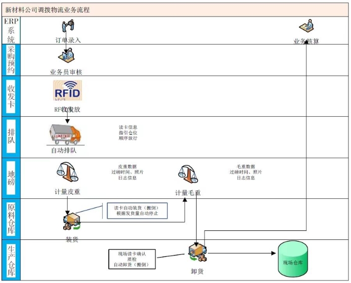 面向新材料企業的智能物流管理系統設計 王瑞江 朱曉霞 夏艷麗 張莉莉 摘要:以某環保新材料企業為例,回顧物流系統優化建設過程,從物流信息化需求入手,融合一卡通平臺、企業ERP 系統與現代管理思想,建立了一個現代化、智能化的新型企業物流管理系統,旨在解決企業物流規模日益增加的需求,提高物流運作效率,力求為相關企業以兩化融合推動轉型高質量發展提供一些參考。 關鍵詞:智能物流管理系統;ERP 系統;一卡通平臺;系統設計;新材料企業 一、引言 兩化融合方興未艾,新一代信息技術高度融合先進管理思想,日益滲透實體經濟,形成新型的生產方式、商業模式和經濟增長點,激勵企業投身于物流信息化建設之中,通過信息化、智能化和精細化管控,引領企業物流管理模式革新,催生智能物流新范式,實現提質降本增效[1-2]。 眾多企業憑借敏銳嗅覺將智能物流、智能管控、供應鏈管理等技術應用在生產管理全過程,實現“產銷一體、管控銜接、三流協同”,提升質量控制技術、控制運營成本、完善物流管理機制、優化三流流程等,實現企業智能化物流管理新模式,為企業高質量發展創造條件。郭占山等利用物流一卡通平臺與企業ERP 無縫對接技術搭建了常山南方水泥有限公司的物流信息系統,實現了企業物流的集中管控[3]。俞樞根等以新型建材水泥廠為研究對象,構建了一個全過程無人干預的信息化管理系統,實現了企業產供銷的集成化、智能化管理[4]。周正文等采用B/S結構和Web服務系統設計了株洲時代新材料科技有限公司的物流運輸系統,有效解決了物流管理信息化難題[5]。余國林采用C/S架構設計了葛洲壩鐘祥水泥廠的物流信息系統,開發了車輛調度、道閘控制、過磅計量等一卡通平臺,并與企業ERP 形成無縫對接,提高了物流服務效率[6]。申世武和梁小波等分別以柳鋼礦石物流園區為面向對象,設計了一卡通車輛信息系統,規避了管理風險和操作漏洞,實現了企業物流全程監控及防范,提高了企業物流管理水平[7]。郭忍強提出了一個面向大型礦山企業物流的SOA系統結構,主要涵蓋了客服、倉儲、運輸配送、財務管理等功能模塊,強化企業物流管理水平,提高了企業運營效益[8]。 本文以某環保新材料企業為例,回顧物流系統優化建設過程,融合互聯網、物聯網、大數據、ERP系統和一卡通平臺等新一代信息技術,探索出的一種工業化與信息化深度融合的全新模式,建立了一個現代化、智能化的物流管理系統,旨在解決企業日益寬泛的規模需求,提高物流運作效率,力求為相關企業以兩化融合推動轉型高質量發展提供一些參考。 二、企業介紹與需求分析 (一)企業介紹 某新材料公司是以石灰石(碳酸鈣)原材料深加工為主導產業的企業,石灰石開采加工生產線,年處理能力1000萬t,未來獲取臨近礦產資源產能可達到年生產能力2000萬t,主要包括綠色建材、脫硫劑、冶金溶劑、高端(輕、重)碳酸鈣填料、工業廢酸處理劑石灰以及食品級碳酸鈣填料等產品。目前,生產區建成了4條鈣質脫硫劑生產線,年生產鈣質脫硫劑330萬t,冶金溶劑生產線1條年產400萬t,工業廢酸處理劑生產線1條年產100萬t,綠色建筑材料生產線年產100萬t,加上其他原料30萬t進廠,累計物流量年累計1000萬t,按照工作日計算每天4.5萬t,平均日進出廠區的車輛近1000輛左右,物流規模大。另外,廠區布局了6臺電子地磅,3條田字環形物流通道,12個散、袋裝車臺面,1個電子閘門(人車分離),門外設有停放100輛運輸車的暫停區,聯通外界3.8km外的交通道路的是一條寬度約4m的鄉級道路,廠區來往車輛較多,外聯道路狹窄、彎多復雜,易發生交通堵塞和事故,物流車輛組織難度極大。 (二)需求分析 新材料公司產品需通過多種車輛運輸,作業時需要與生產、計量、裝卸、倉儲、門禁、打卡、核算等環節的設備協同運行,同時要統籌在途車輛的精確調度和精準計量。因此,系統設計的總體目標是以現代信息技術為支撐,以互聯共享、統籌優化、集中管控、協同集成為基礎,在滿足管理規范、生產安全、服務和諧的前提下,打造一個融合管理、智能化、信息化和數字化為一體的智能物流平臺,實現企業穩定生產、提質增效和物流通暢,有助于提升企業的管理水平。經過實際業務摸底,公司物流管理系統的需求如下: 1.系統面向客戶、企業本身、物流承運商等用戶,能夠集成三者信息,互聯互通,實現信息共享。 2.系統整體功能簡易化、流程標準化、數據信息精準化、管理可視化。 3.系統滿足企業多業務模塊處理的便捷性、協同性。 4.系統能夠無縫匹配企業內部ERP 系統,一卡通平臺,實現“產銷一體、管控有序、三流同步”,實現在財務、銷售、生產、庫存、采購、計量、運輸等方面的智能化管控。 5.系統能夠解決廠區內外物流通道通達性,不出現堵塞、事故以及其他可能存在的安全隱患。 6.能夠利用移動互聯網,實現各環節間信息共享的及時性、便利性及精準性。 三、物流系統設計架構 (一)總體設計方案 針對新材料企業現狀與需求,系統覆蓋了采購、生產、銷售、計量、倉儲、物流、質檢、能源等企業生產經營的各個環節,對企業供應鏈物流進行全程管理。系統規劃設計方案,一方面采用互聯網、云計算、大數據及移動通信技術等新一代信息技術,在企業原有ERP平臺的基礎上,結合一卡通物流系統的功能模塊[9],實現企業生產經營