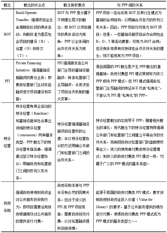 基礎(chǔ)設(shè)施采用PPP模式的可持續(xù)應(yīng)用及實(shí)現(xiàn)路徑 李開孟 伍迪 PPP模式廣泛用于基礎(chǔ)設(shè)施和公共服務(wù)領(lǐng)域,但是不同國家和相關(guān)國際組織對PPP模式的內(nèi)涵及其特征存在不同的理解,而且PPP模式的基本特征隨著時代的發(fā)展也在不斷發(fā)生變化。本文系統(tǒng)梳理了PPP與相關(guān)概念的關(guān)系,總結(jié)世界各國PPP模式應(yīng)用的主要經(jīng)驗(yàn),基于目標(biāo)視角提出不同類型PPP模式的主要特征及其演進(jìn)規(guī)律,并為政策制定者和項(xiàng)目決策者提出相關(guān)建議。 一、引言 基礎(chǔ)設(shè)施與公共服務(wù)的不合理供給可能會產(chǎn)生政府失靈和市場失靈問題。為了解決傳統(tǒng)的完全由政府部門提供公共服務(wù)模式下的政府失靈問題,以及完全由企業(yè)提供公共服務(wù)模式下的市場失靈問題,世界各國一直在探索如何發(fā)揮公共部門和私營部門各自的優(yōu)勢,建立合作伙伴關(guān)系,進(jìn)行體制機(jī)制的改革創(chuàng)新,提升公共服務(wù)供給的質(zhì)量和效率[1]。這種探索催生了PPP模式的形成和發(fā)展,對于推動基礎(chǔ)設(shè)施建設(shè)領(lǐng)域投融資體制的改革創(chuàng)新發(fā)揮了重要作用[2][3]。PPP模式雙方合作的核心目的,就是既要發(fā)揮好公共部門的職能,又要充分發(fā)揮市場配置資源的積極作用[4],從而提升公共服務(wù)的供給質(zhì)量和效率[5]。 伴隨PPP理念的實(shí)踐應(yīng)用,也產(chǎn)生了越來越多不同的具體PPP操作模式,這為項(xiàng)目決策者提供很大選擇空間的同時,也增加了選擇的難度[6]。不同國家、不同領(lǐng)域、不同項(xiàng)目往往會有模式選擇的不同偏好,選擇何種模式往往取決于各國PPP政策執(zhí)行的目標(biāo)和目的[7]。同時,PPP內(nèi)涵和采用PPP模式目標(biāo)的不斷延伸,造成了PPP與一些其他相關(guān)既有概念的混淆,例如BOT、PFI、特許經(jīng)營、政府采購等,這也給政策制定者和項(xiàng)目決策者提出了更高的要求[8]。因此,針對上述問題,本文首先系統(tǒng)梳理PPP與相關(guān)概念的關(guān)系,總結(jié)PPP模式在一些代表性國家推廣應(yīng)用的實(shí)踐經(jīng)驗(yàn)。在此基礎(chǔ)上,從政府采用PPP模式目標(biāo)優(yōu)先次序選擇的視角,提出PPP模式的三個基礎(chǔ)類型,最后總結(jié)三個類型PPP模式的基本特點(diǎn)、代際演進(jìn)及實(shí)踐應(yīng)用的對策建議。 二、PPP相關(guān)概念辨析 (一)PPP與BOT PPP項(xiàng)目倡導(dǎo)的“可持續(xù)伙伴關(guān)系”理念[9][10]可以通過多種具體模式來實(shí)現(xiàn),BOT模式是其中最常見的具體模式之一。但是,并不能認(rèn)為BOT和PPP兩個概念相同,事實(shí)上,從概念層次來看,BOT和PPP實(shí)際上是兩個層次視角下的不同概念。BOT概念的視角是從項(xiàng)目全生命周期的主要流程視角下進(jìn)行定義的,強(qiáng)調(diào)項(xiàng)目要經(jīng)過建設(shè)(Build)、運(yùn)營(Operate)和移交(Transfer)等主要流程,因此,無論任何類型回報(bào)機(jī)制的PPP項(xiàng)目,都可以采用BOT模式類型的合同進(jìn)行項(xiàng)目建設(shè)、運(yùn)營、移交等流程中相關(guān)權(quán)利義務(wù)的約定,在這個流程視角下,BOT又衍生了很多種模式,如BOOT、TOT、ROT、BOO等;與之相比,PPP則強(qiáng)調(diào)合作雙方是否能夠建立一種可持續(xù)的“合作伙伴關(guān)系”(Partnerships),其概念是從項(xiàng)目的利益相關(guān)者之間關(guān)系的視角進(jìn)行定義的。 對于BOT項(xiàng)目而言,如果在BOT合同中的設(shè)計(jì)考慮了項(xiàng)目利益相關(guān)者之間可持續(xù)的合作伙伴關(guān)系,即充分體系了PPP概念所倡導(dǎo)的理念,那么這樣的BOT項(xiàng)目同時也就是PPP項(xiàng)目;如果項(xiàng)目的BOT合同僅約定了項(xiàng)目在運(yùn)作的建設(shè)、運(yùn)營、移交各流程中每個階段的具體活動,而忽視了構(gòu)建項(xiàng)目參與主體之間的長期合作伙伴關(guān)系,例如忽視了雙方的利益與風(fēng)險分擔(dān)機(jī)制,那么這樣的交易結(jié)構(gòu)在理念上不能稱之為PPP項(xiàng)目,這種BOT也應(yīng)該是推廣應(yīng)用PPP模式所應(yīng)盡量避免的[11]。 邏輯上,所有類型的PPP項(xiàng)目都可以采用BOT(包含其各種衍生模式)的合同結(jié)構(gòu),因此就字面而言都可以稱之為BOT項(xiàng)目[12]。但是,并不是所有類型的BOT項(xiàng)目均能符合PPP的理念要求,而被稱之為PPP項(xiàng)目。 (二)PPP與PFI PFI(Private Financing Initiative)基本含義就是強(qiáng)調(diào)要由私營部門在基礎(chǔ)設(shè)施融資中發(fā)揮主導(dǎo)作用,由私營部門主導(dǎo)進(jìn)行項(xiàng)目建設(shè),具體可以從狹義和廣義的不同角度進(jìn)行理解。就廣義而言,凡是屬于私營部門主導(dǎo)融資的基礎(chǔ)設(shè)施市場化運(yùn)作項(xiàng)目均屬于PFI項(xiàng)目;就狹義而言,PFI項(xiàng)目專指起源于英國的政府付費(fèi)型PPP模式,這類項(xiàng)目應(yīng)該按照政府采購公共服務(wù)的程序要求進(jìn)行運(yùn)作。在英國,PPP和PFI一般為同一個概念,這是由于英國主要采用政府付費(fèi)的方式推廣PPP,但如果推廣到國際范疇,對于使用者付費(fèi)模式的PPP稱為PFI顯然不太合適,因此在國際上,又逐漸演變?yōu)閷⒄顿M(fèi)類的PFI稱為狹義的PPP,從而體現(xiàn)PFI