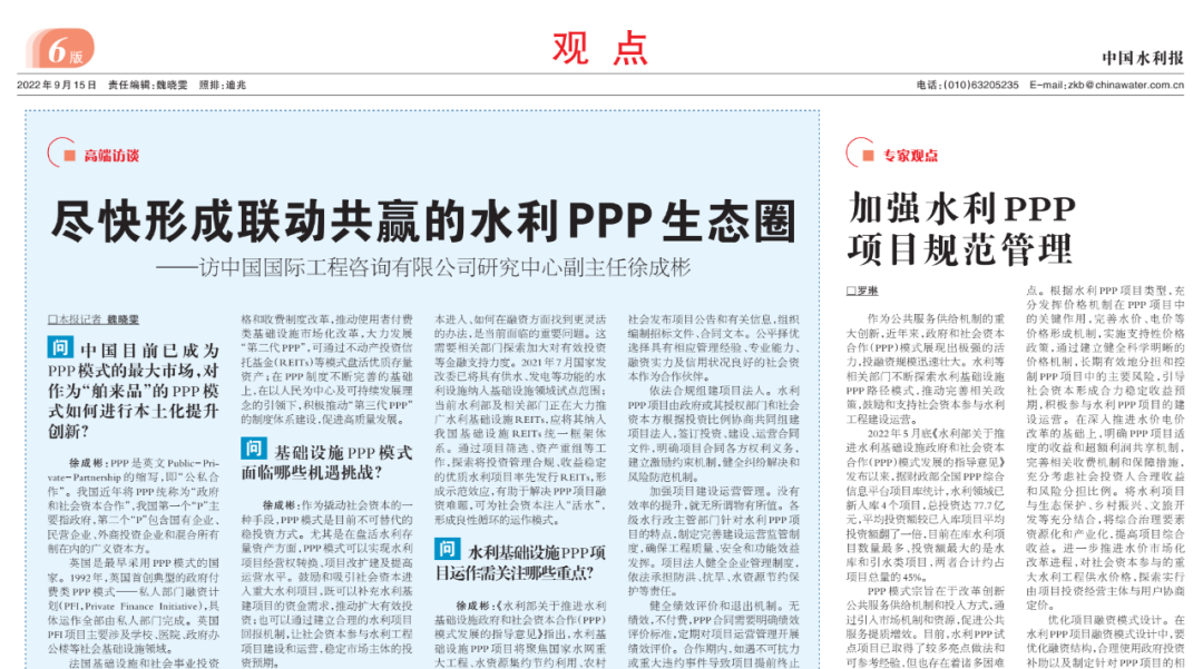 徐成彬 | 盡快形成聯動共贏的水利PPP生態圈