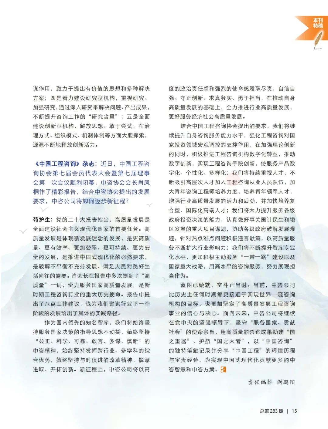 繼續用高質量咨詢服務護航“中國工程”——專訪中國國際工程咨詢有限公司黨委書記、董事長、總經理茍護生