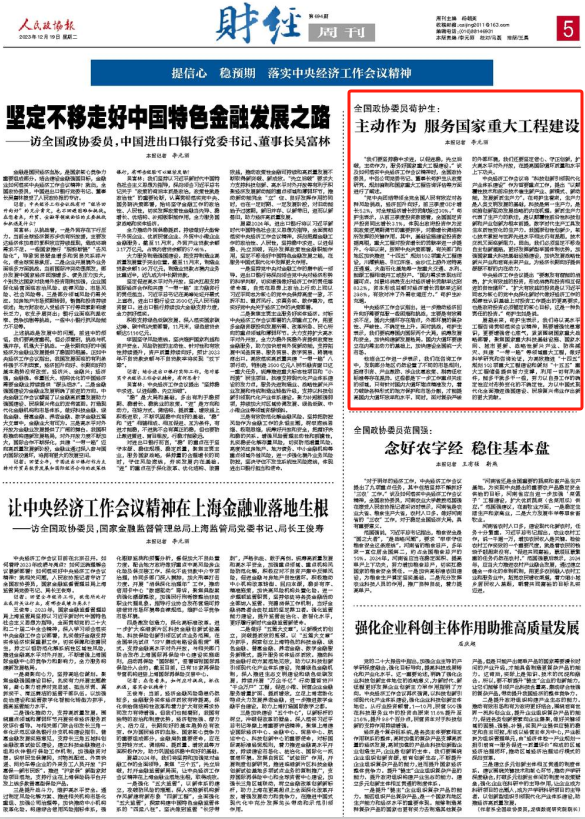 △全國政協(xié)委員,中咨公司黨委書記、董事長茍護生 “黨中央團結帶領全黨全國人民有效應對各種風險挑戰(zhàn),經(jīng)濟回升向好,前三季度GDP增長5.2%,對全球經(jīng)濟增長的貢獻超過30%。”茍護生表示,從前三季度投資數(shù)據(jù)看,全國固定資產(chǎn)投資同比增長3.1%,體現(xiàn)出政府投資作為宏觀政策逆周期調節(jié)的重要抓手,對穩(wěn)增長調結構所發(fā)揮的關鍵作用。其中,基礎設施建設投資數(shù)據(jù)亮眼,重大工程對投資增長的貢獻率進一步提升。今年以來,按照中央決策部署,有關部門和地區(qū)加快推進“十四五”規(guī)劃102項重大工程建設,川藏鐵路、引江濟淮、金沙江上游外送特高壓通道、大型石化基地等一批重大交通、水利、能源工程相繼開工或投產(chǎn)。“國內需求表現(xiàn)也可圈可點。如最終消費支出對經(jīng)濟增長貢獻率達到83.2%,資本形成總額對經(jīng)濟增長貢獻率達到29.8%,有效對沖了外需收縮壓力。”茍護生補充道。 中央經(jīng)濟工作會議指出,進一步推動經(jīng)濟回升向好需要克服一些困難和挑戰(zhàn),主要是有效需求不足,國內大循環(huán)存在堵點,外部環(huán)境的復雜性、嚴峻性、不確定性上升。面對挑戰(zhàn),茍護生表示,我們要統(tǒng)籌國內國際兩個大局,統(tǒng)籌發(fā)展和安全,加快構建新發(fā)展格局。國內大循環(huán)要建立在內需主動力的基礎上,加快建設全國統(tǒng)一大市場。 他結合工作進一步表示,我們在咨詢工作中,發(fā)現(xiàn)部分地區(qū)仍然設置了不同的市場規(guī)則,招商引資、產(chǎn)業(yè)激勵、涉企優(yōu)惠政策、稅費征收標準等存在差異。這些都是下一步工作重點關注的領域,只有針對國內大循環(huán)堵點精準發(fā)力,著力破除各種形式的地方保護和市場分割,才能提高國內大循環(huán)效率和水平。同時,面對復雜嚴峻的外部環(huán)境,我們還要堅定信心、守正創(chuàng)新,擴大高水平對外開放,在提高國際循環(huán)質量和水平上下功夫。 中央經(jīng)濟工作會議將“科技創(chuàng)新引領現(xiàn)代化產(chǎn)業(yè)體系建設”作為首要重點工作,提出“以顛覆性技術和前沿技術催生新產(chǎn)業(yè)、新模式、新動能,發(fā)展新質生產(chǎn)力”。在茍護生看來,生產(chǎn)力是人類文明發(fā)展的基礎,科技是第一生產(chǎn)力,是實施創(chuàng)新驅動發(fā)展戰(zhàn)略的內在機理。新質生產(chǎn)力代表了生產(chǎn)力的躍遷,是以顛覆性前沿性科技創(chuàng)新和產(chǎn)業(yè)創(chuàng)新為根本前提,數(shù)字時代生產(chǎn)工具發(fā)生本質性變化的生產(chǎn)力。我國原創(chuàng)性創(chuàng)新少,核心技術掌控與世界先進水平相比仍有差距,技術交流又面臨新阻力。因此,我們必須堅定不移走自主創(chuàng)新道路,更好發(fā)揮新型舉國體制優(yōu)勢,加強國家重大科技基礎設施建設,加快發(fā)展戰(zhàn)略性新興產(chǎn)業(yè)和培育未來產(chǎn)業(yè),為經(jīng)濟長期向好提供源源不斷的內在動力。 中央經(jīng)濟工作會議提出“要激發(fā)有潛能的消費,擴大有效益的投資,形成消費和投資相互促進的良性循環(huán)”。“擴大有效益的投資是以習近平同志為核心的黨中央深化新時代做好經(jīng)濟工作的規(guī)律性認識基礎上對投資工作提出的更高要求,也是政府投資必須錨定的核心目標,這是一種負責任的投資。”茍護生如是說。 展望未來,茍護生表示,我們將以高水平工程咨詢貫徹落實會議精神,既要增強憂患意識,更要增強信心底氣,緊緊圍繞國家重大戰(zhàn)略部署,聚焦國家重大科技基礎設施、國家水網(wǎng)、城市更新、戰(zhàn)略性新興產(chǎn)業(yè)、防洪減災、共建“一帶一路”等領域重大工程,做好科學研究和咨詢論證,為高效推進“十四五”規(guī)劃102項重大工程建設和謀劃“十五五”重大工程儲備提供智力支撐,利用一切有利條件,能多干就多干一些,努力以自身工作的確定性應對形勢變化的不確定性,為以中國式現(xiàn)代化全面推進強國建設、民族復興偉業(yè)作出新的更大貢獻。 來源:《人民政協(xié)報》(2023年12月19日第05版) | |||||