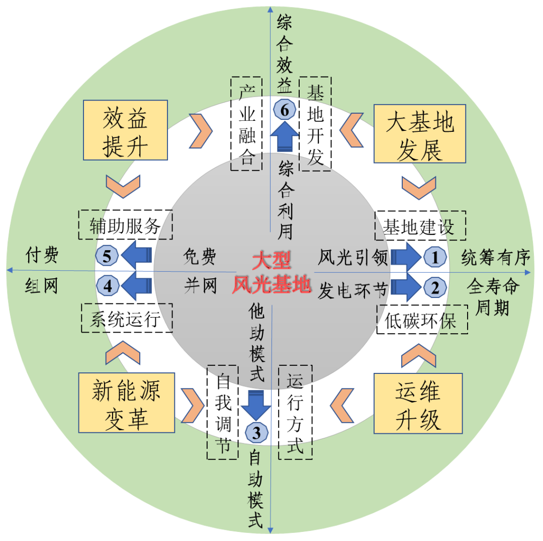 沙漠、戈壁、荒漠地區(qū)大型風(fēng)光基地 建設(shè)重點(diǎn)問題研究 梁雙 王涉 謝千 摘要:為貫徹落實(shí)碳達(dá)峰碳中和戰(zhàn)略,我國加快推進(jìn)沙漠、戈壁、荒漠地區(qū)大型風(fēng)光基地建設(shè)。本文結(jié)合前期探索實(shí)踐,從經(jīng)濟(jì)、生態(tài)、社會等方面總結(jié)了沙漠、戈壁、荒漠地區(qū)大型風(fēng)光基地建設(shè)取得的“三重收益”,從環(huán)保、消納、安全、經(jīng)濟(jì)等方面分析了需要重點(diǎn)關(guān)注的“七個問題”,從基地建設(shè)、新能源發(fā)展、系統(tǒng)運(yùn)行等角度提出了“六個變革”的發(fā)展建議,推動提升綜合效益,構(gòu)建新型能源體系。 一、引言 為推動實(shí)現(xiàn)碳達(dá)峰碳中和目標(biāo),大力發(fā)展可再生能源,我國加快推進(jìn)沙漠、戈壁、荒漠地區(qū)大型風(fēng)光基地建設(shè)。習(xí)近平總書記指出,要加大力度規(guī)劃建設(shè)以大型風(fēng)光電基地為基礎(chǔ)、以其周邊清潔高效先進(jìn)節(jié)能的煤電為支撐、以穩(wěn)定安全可靠的特高壓輸變電線路為載體的新能源供給消納體系。 《“十四五”可再生能源發(fā)展規(guī)劃》進(jìn)一步明確,加快推進(jìn)以沙漠、戈壁、荒漠地區(qū)為重點(diǎn)的大型風(fēng)電太陽能發(fā)電基地。以風(fēng)光資源為依托、以區(qū)域電網(wǎng)為支撐、以輸電通道為牽引、以高效消納為目標(biāo),統(tǒng)籌優(yōu)化風(fēng)電光伏布局和支撐調(diào)節(jié)電源,在內(nèi)蒙古、青海、甘肅等西部北部沙漠、戈壁、荒漠地區(qū),加快建設(shè)一批生態(tài)友好、經(jīng)濟(jì)優(yōu)越、體現(xiàn)國家戰(zhàn)略和國家意志的大型風(fēng)電光伏基地項(xiàng)目。目前,第一批1億千瓦項(xiàng)目已陸續(xù)開工建設(shè),第二批約4.55億千瓦項(xiàng)目正在研究論證。 沙漠、戈壁、荒漠由“生態(tài)負(fù)資產(chǎn)”轉(zhuǎn)化為“綠電熱土地”,是我國推動能源清潔低碳轉(zhuǎn)型的有效途徑,更是保障能源安全供給的重大舉措,同時也面臨著環(huán)保、消納、安全和經(jīng)濟(jì)等多重挑戰(zhàn),應(yīng)統(tǒng)籌謀劃,以全方位深層次變革推動構(gòu)建新型能源體系。 二、探索實(shí)踐已取得“三重效益” 我國沙漠、戈壁、荒漠地區(qū)面積廣闊,占國土面積的27%左右,風(fēng)能太陽能資源豐富,技術(shù)可開發(fā)量占全國60%以上,開發(fā)潛力巨大。自2008年探索在沙漠、戈壁、荒漠地區(qū)開發(fā)建設(shè)風(fēng)光項(xiàng)目以來,已陸續(xù)建成甘肅酒泉、青海塔拉灘、內(nèi)蒙庫布齊等多個基地,取得了良好的經(jīng)濟(jì)效益、生態(tài)效益和社會效益。 (一)經(jīng)濟(jì)效益 沙漠、戈壁、荒漠地區(qū)風(fēng)光資源豐富,單位千瓦風(fēng)電年發(fā)電量約2000~2500千瓦時,單位千瓦光伏年發(fā)電量約1000~1500千瓦時,并網(wǎng)消納后可獲得穩(wěn)定的經(jīng)濟(jì)收益,將西部地區(qū)的風(fēng)光和土地資源優(yōu)勢轉(zhuǎn)化為經(jīng)濟(jì)優(yōu)勢。 以全國首個千萬千瓦級風(fēng)電基地甘肅酒泉為例,可用于開發(fā)風(fēng)光發(fā)電的戈壁荒灘面積約14550萬畝,技術(shù)可開發(fā)量超過4000萬千瓦。截至2021年底,總裝機(jī)超過1200萬千瓦,年發(fā)電量超過260億千瓦時,每年可獲得發(fā)電收益超過80億元。又如我國最大的光伏發(fā)電基地青海塔拉灘生態(tài)光伏園,總裝機(jī)量超過900萬千瓦,年發(fā)電量超過90億千瓦時,每年可獲得發(fā)電收益超過20億元。 (二)生態(tài)效益 光伏組件面積大,可有效降低地面日照輻射、水分蒸發(fā)和地表風(fēng)速,起到保土固沙作用。光伏板的定期清洗可灌溉板下的土地,促進(jìn)植被的生長和恢復(fù),實(shí)現(xiàn)“板上發(fā)電、板下種植、板間養(yǎng)殖、生態(tài)修復(fù)”的立體發(fā)展模式。 農(nóng)光互補(bǔ)、牧光互補(bǔ)和光伏治沙是因地制宜實(shí)現(xiàn)生態(tài)效益的3種典型方式。以寧夏銀川寶豐農(nóng)光一體光伏電站為例,采用“板上發(fā)電,板下種枸杞”的新型綠色產(chǎn)業(yè)發(fā)展模式,使銀川黃河?xùn)|岸16萬畝荒漠化土地?zé)òl(fā)生機(jī)。青海塔拉灘光伏電站作為牧光互補(bǔ)電站,實(shí)現(xiàn)“板上發(fā)電、板間牧羊”,養(yǎng)殖牛羊22000余只,修復(fù)原有半荒漠化草地91萬畝。內(nèi)蒙古庫布齊200萬千瓦光伏治沙項(xiàng)目,采用“板上發(fā)電、板下種植、板間養(yǎng)殖、治沙改土、產(chǎn)業(yè)扶貧”模式,修復(fù)整治荒沙2.2萬畝。 (三)社會效益 通過風(fēng)光發(fā)電和生態(tài)修復(fù)可以發(fā)展種植業(yè)、畜牧業(yè)和特色旅游,促進(jìn)西部產(chǎn)業(yè)發(fā)展,為周邊鄉(xiāng)鎮(zhèn)提供就業(yè)崗位,助力鄉(xiāng)村振興。同時,綠色清潔電力為中東部經(jīng)濟(jì)社會發(fā)展提供支撐,推動能源低碳轉(zhuǎn)型。 以甘肅酒泉風(fēng)電基地為例,通過酒泉-湖南特高壓直流輸電工程向華中地區(qū)送電,通道設(shè)計(jì)輸送能力800萬千瓦,配套風(fēng)電700萬千瓦、光伏280萬千瓦,年輸送清潔電量69.39億千瓦時,年可節(jié)約標(biāo)準(zhǔn)煤208萬噸,減少華中地區(qū)二氧化碳排放578萬噸、二氧化硫排放3萬噸、氮氧化物排放1.34萬噸。 三、研究論證需關(guān)注的“七個問題”
