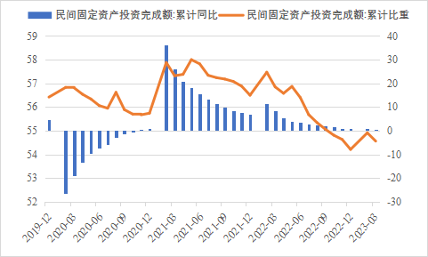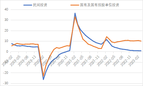 2023年一季度生產(chǎn)需求明顯改善,市場預(yù)期加快好轉(zhuǎn),經(jīng)濟(jì)企穩(wěn)勢頭開始顯現(xiàn)。固定資產(chǎn)投資穩(wěn)定增長為一季度經(jīng)濟(jì)平穩(wěn)運行提供了重要支撐,各地都將穩(wěn)投資作為重要工作,有效應(yīng)對外部不確定性因素沖擊。隨著供需循環(huán)進(jìn)一步暢通,疊加前期政策效應(yīng)等多方面積極因素,擴(kuò)大有效投資仍有潛力和空間。下階段,應(yīng)聚焦重點產(chǎn)業(yè)、重要產(chǎn)業(yè)鏈、民生領(lǐng)域等精準(zhǔn)發(fā)力,多渠道籌措項目建設(shè)資金,更好發(fā)揮投資對于調(diào)結(jié)構(gòu)、促轉(zhuǎn)型的帶動作用,為經(jīng)濟(jì)高質(zhì)量發(fā)展打下堅實基礎(chǔ)。 一、固定資產(chǎn)投資整體運行情況 1.整體投資保持平穩(wěn)增長態(tài)勢 2023年1-3月,我國固定資產(chǎn)投資(不含農(nóng)戶,下同)10782億元,同比增長5.1%,較國內(nèi)生產(chǎn)總值增速高了0.6個百分點,與2022年全年增速持平,固定資產(chǎn)投資增速仍保持高位。從投資構(gòu)成看,一季度建安工程、設(shè)備工器具購置、其他費用分別增長4.1%、4.2%、8.2%。建安工程、設(shè)備工器具購置保持較快增長,人工、材料、施工機(jī)具使用以及設(shè)備購置等費用增速加快,反映了在穩(wěn)投資系列政策推動下,新上項目較多、新上項目中設(shè)備購置量增多、企業(yè)更新改造力度加大。 圖1 全國固定資產(chǎn)投資增速(%) 數(shù)據(jù)來源:國家統(tǒng)計局 2.民間投資意愿和能力仍待恢復(fù) 2023年1-3月,民間固定資產(chǎn)投資為58532億元,同比增長0.6%,較1-2月低了0.2個百分點,低于投資整體增速4.5個百分點,仍處于低位運行狀態(tài)。從季度波動看,民間固定資產(chǎn)投資的增速已由2022年第一季度的8.4%持續(xù)下滑,下滑幅度較大。民間固定資產(chǎn)投資占比進(jìn)一步萎縮,跌至2011年以來的次低點,僅為54.56%。 圖2 民間投資增速及占比(%) 數(shù)據(jù)來源:國家統(tǒng)計局,Wind數(shù)據(jù)庫 近年來,受疫情反復(fù)、成本上升、內(nèi)需收縮等因素影響,民間投資動力和能力普遍偏弱,民營企業(yè)面臨較嚴(yán)重的需求收縮。2022年開始,國有及國有控股單位投資增速超過民間投資增速,且差距逐漸拉大。2023年1-3月,國有及國有控股單位同比增長10%,較民間投資增速高了9.4個百分點。1-2月,內(nèi)資企業(yè)中的國有企業(yè)、集體企業(yè)和股份合作企業(yè)固定資產(chǎn)投資分別同比增長17.8%、20.5%和17.1%。 圖3 民間投資、國有及國有控股單位投資增速(%) 數(shù)據(jù)來源:國家統(tǒng)計局,Wind數(shù)據(jù)庫 3.基建投資加力提效,制造業(yè)投資結(jié)構(gòu)持續(xù)優(yōu)化 2023年1-3月,制造業(yè)投資保持較快增長,基建投資增速有所提升,房地產(chǎn)投資增速仍為負(fù)值,但降幅明顯收窄。基礎(chǔ)設(shè)施投資在增加政策性開發(fā)性金融工具額度、用好專項債等融資支持政策以及各地區(qū)各部門積極貫徹落實穩(wěn)增長系列政策推動下,效果逐步顯現(xiàn),一季度基礎(chǔ)設(shè)施投資同比增長8.8%,高于全部投資5.7個百分點,是大類投資中增長最快的領(lǐng)域?;ㄍ顿Y呈現(xiàn)結(jié)構(gòu)性特征,資金投向更加聚焦。一季度水利管理業(yè)投資增長10.3%,公共設(shè)施管理業(yè)投資增長7.7%,道路運輸業(yè)投資增長8.5%,鐵路運輸業(yè)投資增長17.6%?;ǖ耐七M(jìn)速度與資金的到位情況呈強(qiáng)相關(guān)性,從政策支持領(lǐng)域看,資金重點流向了市政及產(chǎn)業(yè)園區(qū)基礎(chǔ)設(shè)施、社會事業(yè)、交通基礎(chǔ)設(shè)施、保障性安居工程、農(nóng)林水利、生態(tài)環(huán)保、倉儲物流基礎(chǔ)設(shè)施等領(lǐng)域,聚焦于基礎(chǔ)設(shè)施“補(bǔ)短板”以及新基建“提質(zhì)量”,確保了資金精準(zhǔn)灌溉。 表1 1-3月我國各行業(yè)固定資產(chǎn)投資情況 2023年一季度,國內(nèi)需求逐步擴(kuò)大,經(jīng)營主體預(yù)期好轉(zhuǎn),制造業(yè)投資同比增長7%,比整體投資高1.9個百分點。其中,高技術(shù)制造業(yè)投資同比增長15.2%,對制造業(yè)投資拉動作用明顯,表明制造業(yè)轉(zhuǎn)型升級態(tài)勢持續(xù)。制造業(yè)改造升級潛力巨大,高技術(shù)制造業(yè)投資明顯快于全部投資。3月,制造業(yè)采購經(jīng)理指數(shù)(PMI)為51.9%,比上月下降0.7個百分點,連續(xù)三個月位于景氣區(qū)間。隨著國內(nèi)經(jīng)濟(jì)循環(huán)加快恢復(fù),制造業(yè)生產(chǎn)和市場需求穩(wěn)步回升,生產(chǎn)指數(shù)和新訂單指數(shù)分別為54.6%和53.6%,位于近期較高景氣水平,裝備制造業(yè)、高技術(shù)制造業(yè)PMI分別為53%、51.2%,制造業(yè)繼續(xù)保持?jǐn)U張態(tài)勢。從企業(yè)規(guī)模看,大、中、小型企業(yè)PMI分別為53.6%、50.3%和50.4%,低于上月0.1、1.7和0.8個百分點,均高于臨界點,大型企業(yè)恢復(fù)發(fā)展動能表現(xiàn)強(qiáng)勁。 圖4:制造業(yè)PMI指數(shù)(%) 數(shù)據(jù)來源:國家統(tǒng)計局,Wind數(shù)據(jù)庫 2023年受需求走弱影響,房地產(chǎn)開發(fā)投資增速持續(xù)放緩,2023年1-3月,我國房地產(chǎn)開發(fā)投資、住宅開發(fā)投資分別同比下降5.8%、4.1%。房地產(chǎn)開發(fā)投資占固定資產(chǎn)投資完成額的比重也降至24.2%,較上年同期下降2.3個百分點。