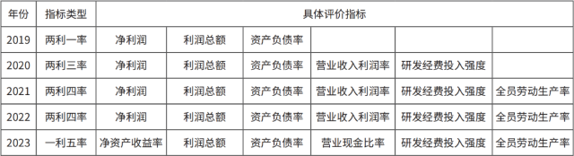 黨的二十大報告提出:“高質量發展是全面建設社會主義現代化國家的首要任務”“深化國資國企改革,加快國有經濟布局優化和結構調整,推動國有資本和國有企業做強做優做大,提升企業核心競爭力”“完善中國特色現代企業制度,弘揚企業家精神,加快建設世界一流企業”。遵循上述要求,發揮經營考核指標體系“指揮棒”作用,推動中央企業實現“質”的有效提升和“量”的合理增長,是更好發揮國有經濟戰略支撐作用、構建高質量發展新格局的重要途徑。 一、中央企業經營指標體系的演進及其戰略導向 (一)經營指標體系的演進過程 為全面深入貫徹黨的二十大精神和中央經濟工作會議精神,推動中央企業進一步聚焦提升核心競爭力,聚焦實現高質量發展,聚焦培育世界一流企業,國務院國資委將中央企業經營指標體系明確為“一利五率”,并提出“一增一穩四提升”的年度經營目標要求。 事實上,如表1所示,國務院國資委對中央企業經營指標體系已經歷多次變化,從2019年首次提出“兩利一率”指標體系,2020年新增“營業收入利潤率”“研發經費投入強度”兩個指標,2021年又新增“全員勞動生產率”指標,并維持到2022年,2023年用“凈資產收益率”代替“凈利潤”,用“營業現金比率”代替“營業收入利潤率”。 表1 中央企業經營指標體系歷年變化