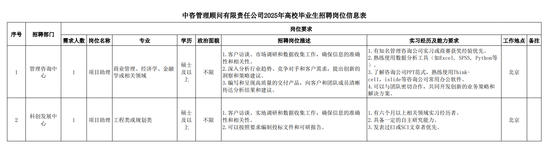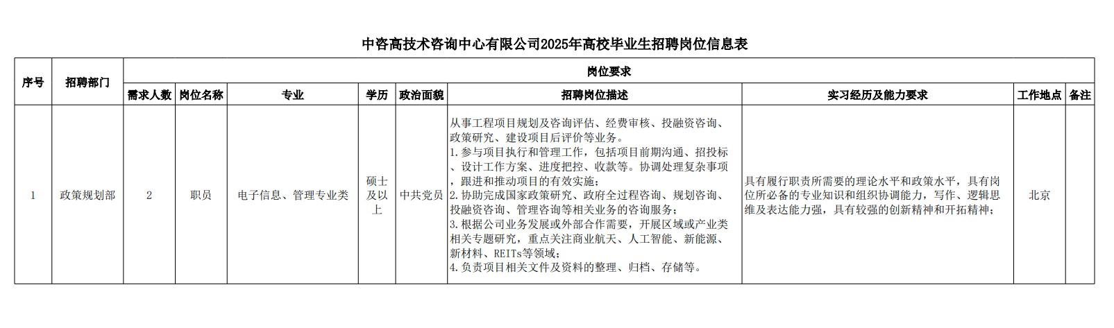 中國國際工程咨詢有限公司所屬企業2025年校園招聘公告(招聘已結束) | ||||