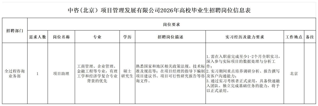 中國國際工程咨詢有限公司所屬企業2026年校園招聘公告 | ||||