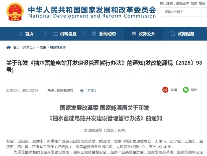 強化頂層制度設計 全面構筑抽水蓄能開發建設管理體系 ——解讀《抽水蓄能電站開發建設管理暫行辦法》 徐佳成 一、《辦法》意義重大 加快發展抽水蓄能是提升電力系統靈活性、經濟性和安全性的重要途徑,是構建以新能源為主體的新型電力系統的迫切需求。截至2024年底,全國抽水蓄能投產裝機規模已超過5800萬千瓦,是我國實現新能源電力高比例消納和電力系統穩定運行的重要保障。 該《辦法》是我國國家層面首部專門針對抽水蓄能開發建設的管理辦法,立足當前、著眼長遠,其出臺既是行業發展的形勢所需,也是產業未來可持續發展的制度保障:一方面,“十四五”以來,在《關于進一步完善抽水蓄能價格形成機制的意見》(發改價格〔2021〕633號)等政策的推動下,我國抽水蓄能進入開發建設高峰期,但也出現了部分區域布局不合理、無序開發、權責不清等問題,亟需國家層面進行規范和引導,破解發展瓶頸;另一方面,在我國能源綠色低碳轉型的大背景下,新能源裝機規模持續擴大,抽水蓄能電站作為目前技術最成熟、經濟性最優且可大規模開發的綠色靈活調節電源,是支撐新能源大規模、高比例、高質量發展的重要能源基礎設施。未來較長時間內,抽水蓄能仍需大力發展,《辦法》的制定標志著我國抽水蓄能開發建設管理體系向現代化和標準化邁進,對系統性指導產業可持續發展具有重大意義。 二、原則堅實、責任落實、定位清晰 《辦法》堅持“生態優先、需求導向、優化布局、有序建設”作為總體原則,以生態文明建設為指導,綠色發展理念貫穿始終;提出加強需求論證,分階段、滾動做好全國及各省區電力系統抽水蓄能合理需求規模的論證工作,引導發展預期;提出加強站點布局優化研究,要求各省區在總量規模合理確定的基礎上,優化各站點的布置。同時,統籌電力發展需求和產業鏈協同,加強規劃引領,指導全國抽水蓄能有步驟、分階段、有序建設。 《辦法》明確了責任劃分,強調國家發展改革委和能源局的責任重在統籌規劃、政策法規和技術標準的研究制定;省級管理部門則重在落實建設項目,對項目全過程管理負責。 《辦法》將抽水蓄能項目劃分為服務電力系統和服務特定電源兩類,明確了各自的服務對象和規劃建設依托,這一劃分貼合我國電力發展特點:一方面,電網側日益龐大復雜的電力系統需要靈活調節電源予以平衡穩定;另一方面,電源側如流域水風光一體化基地、大型風電光伏基地等需要調節支撐電源保障基地高質量電力輸出。 三、頂層設計,統籌管理 《辦法》覆蓋了抽水蓄能電站開發建設的各個階段,包括資源調查、規劃管理、組織實施、核準管理、建設管理、運行管理、監督管理七個階段。筆者認為,《辦法》的制定貼合抽水蓄能項目特點,在以下五個重要方面提出了非常有針對性的管理要求: 一是注重資源保護。《辦法》明確了站點資源調查普查的工作要求,要求選擇的站點需滿足建設抽水蓄能電站的地形地質、水資源和生態環境條件的基本要求。技術上,需從上下庫成庫條件、防滲條件、水頭和距高比、地質條件、征地移民條件等方面對站點進行初步評估。 《辦法》還強調建立省級站點資源庫,加強站點資源保護。對于綜合利用已建水庫和礦(井)開發建設的站點,《辦法》要求在入庫前開展相關科學研究論證和防洪要求等政策符合性分析。這一規定意味著,對于綜合開發的站點需開展專項論證,從根源上解決后續開發建設中可能存在的工程建設標準不統一、產權不清晰、管理邊界模糊、收益分配不明等潛在問題。 二是加強規劃統籌。《辦法》從規劃階段加強項目分類管理,對服務電力系統的抽水蓄能項目加強國家層面統籌。具體包括:由國家能源局組織開展需求規模論證研究,確定全國及分區域需求規模;省級能源主管部門依據需求規模,依托站點資源庫對項目進行綜合比選,提出本省區抽水蓄能布局方案;國家能源局根據各省區上報的布局方案,統籌電力供需、區域協調、產業鏈協同等因素,分年度確定各省區服務電力系統抽水蓄能的總量規模。 此外,《辦法》還厘清了以往對服務特定電源項目定位不清晰的問題,明確了對服務特定電源抽水蓄能項目的納規要求,即項目需列入國家能源局印發的主要流域水風光一體化基地等規劃或批復的大型風電光伏基地等方案。 三是落實組織實施。《辦法》明確省級能源主管部門為抽水蓄能開發建設組織實施的管理主體。針對以往部分地方政府選擇項目開發投資主體流程不規范的問題,《辦法》強調需以競爭性方式優選項目投資主體,同時明確提出不得將強制配套產業、投資落地等作為選定投資主體的開發建設前置條件,為各類市場投資主體公平參與抽水蓄能開發建設提供了制度保障。 《辦法》還要求投資主體按照時序要求積極推進項目,對投資主體退出和難以按期實施的項目均提出了相關管理措施,體現了有序建設的原則。 四是規范前期管理。為避免近年來部分地方政府無序核準抽水蓄能項目導致局部開發過熱等問題,《辦法》重申了項目核準前應依據《企業投資項目核準和備案管理條例》開展投資咨詢評估,明確了項目建設必要性、技術經濟可行性、生態環境影響等評估重點。 結合《關于進一步完善抽水蓄能價格形成機制的意見》(發改價格〔2021〕633號)將抽水