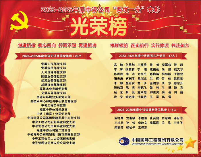 6月30日,中咨公司隆重召開慶祝中國共產(chǎn)黨成立104周年暨“七一”表彰大會,對過去兩年在推進(jìn)公司黨的建設(shè)和改革發(fā)展進(jìn)程中涌現(xiàn)的先進(jìn)典型進(jìn)行表彰,進(jìn)一步激勵各級黨組織和廣大黨員不忘初心、牢記使命,為公司加快建設(shè)國家高端智庫和世界一流咨詢機(jī)構(gòu)作出新的更大貢獻(xiàn)。 公司黨委副書記、董事、總經(jīng)理郭銘群出席會議并講話,受公司黨委書記、董事長茍護(hù)生委托,代表公司黨委,向受到表彰的先進(jìn)集體和個人表示誠摯的祝賀、向奮戰(zhàn)在公司各條戰(zhàn)線的廣大黨員干部職工致以節(jié)日的問候,并對各級黨組織和黨員同志提出要求和期待。會議由公司黨委副書記、工會主席朱嵐主持,黨委委員、總會計(jì)師王麗靜宣讀公司黨委關(guān)于表彰2023—2025年度“兩優(yōu)一先”的決定,公司領(lǐng)導(dǎo)潘小海、沈浩、劉富榮、李開孟參加會議。 郭銘群在講話中指出,公司各級黨組織和廣大黨員干部職工堅(jiān)持以習(xí)近平新時代中國特色社會主義思想為指導(dǎo),以開展深入貫徹中央八項(xiàng)規(guī)定精神學(xué)習(xí)教育為動力,聚焦主責(zé)主業(yè)、把準(zhǔn)功能定位,為黨和國家有關(guān)重大戰(zhàn)略、重大規(guī)劃、重大工程和重大投資政策實(shí)施提供了重要智力支撐,并在實(shí)踐中深刻認(rèn)識到:必須始終把黨的事業(yè)放在心中最高位置,把“兩個維護(hù)”印刻在腦海里、落實(shí)到行動上,牢記“黨之大計(jì)”、胸懷“國之大者”、助建“國之重器”,以更高站位、更高水平、更高質(zhì)量服務(wù)黨和國家科學(xué)決策。 郭銘群強(qiáng)調(diào),公司各級黨組織要扛起主體責(zé)任,鍛造堅(jiān)強(qiáng)堡壘,全體黨員要以黨性立“智”、以清風(fēng)潤“咨”,進(jìn)一步堅(jiān)定發(fā)展信心、保持發(fā)展定力、搶抓發(fā)展機(jī)遇,齊心協(xié)力譜寫公司高質(zhì)量發(fā)展新篇章。銳意改革攻堅(jiān)、埋頭苦干實(shí)干,不折不扣落實(shí)公司“五五戰(zhàn)略”和“3510”策略,以破解發(fā)展難題、提升管理效能、防范化解風(fēng)險的擔(dān)當(dāng)和作為彰顯黨性;堅(jiān)持從群眾中來、到群眾中去,著力解決職工急難愁盼問題,在開展政策研究和咨詢服務(wù)過程中站穩(wěn)人民立場,以用心用情辦實(shí)事的行動和成效彰顯黨性;從嚴(yán)從實(shí)加強(qiáng)作風(fēng)建設(shè),以開展深入貫徹中央八項(xiàng)規(guī)定精神學(xué)習(xí)教育為契機(jī),不斷提高拒腐防變能力,永葆黨員政治本色,在共同營造風(fēng)清氣正干事創(chuàng)業(yè)良好政治生態(tài)中彰顯黨性。 大會共表彰了20個“先進(jìn)基層黨組織”、47名“優(yōu)秀共產(chǎn)黨員”和15名“優(yōu)秀黨務(wù)工作者”。公司領(lǐng)導(dǎo)為受表彰的先進(jìn)集體和個人頒獎。能源業(yè)務(wù)部李德波、中咨工程公司牛博、中咨海外公司蘇寶健代表獲獎集體和個人作交流發(fā)言。 朱嵐在主持講話中指出,公司全體黨員要以先進(jìn)為標(biāo)桿,以典型為榜樣,弘揚(yáng)偉大建黨精神,進(jìn)一步提高政治站位、強(qiáng)化政治擔(dān)當(dāng),堅(jiān)定奮斗意志、堅(jiān)定恒心韌勁,永遠(yuǎn)保持共產(chǎn)黨員的激情和榮耀,攻堅(jiān)克難完成年度各項(xiàng)目標(biāo)任務(wù),以實(shí)干實(shí)績?yōu)辄h旗增光添彩。 會議采取線上線下相結(jié)合的方式召開。公司總部部門副職及以上管理人員和相應(yīng)層級專業(yè)職級人員、在京所屬企業(yè)班子成員和獲獎代表在現(xiàn)場參會。公司總部處級干部和相應(yīng)職級人員、京外所屬企業(yè)班子成員以及各所屬企業(yè)黨員代表線上參會。 | |||||